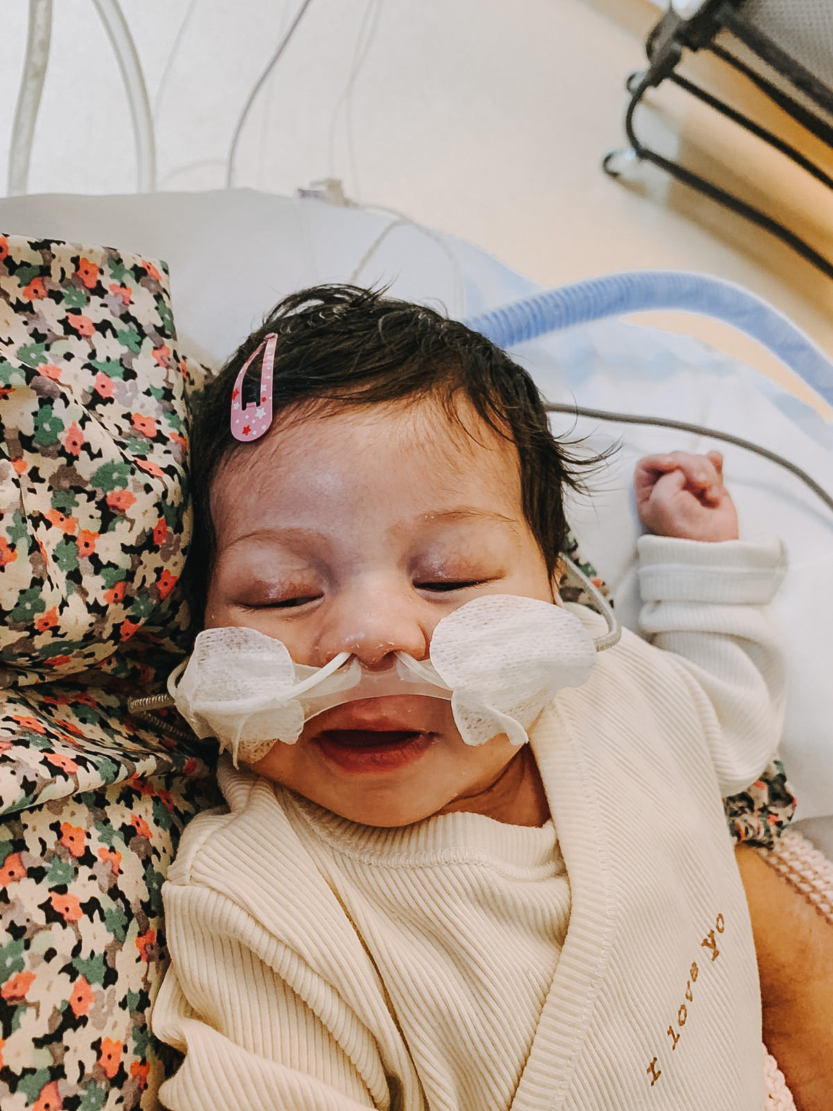 March started off good. Evvy was able to build down breathing support. First from intubation to CPAP and on March 12 she even moved to OptiFlow. For the first time since birth we could see her nose! We were really excited about that. Some off her meds, especially sleeping meds, painkillers and heart meds were built down (not completely). The benefit of her being off intubation was also that now we are able to hold her. So that’s exactly what we have done almost every day since then. The only exception has been the days that she has not been doing well.