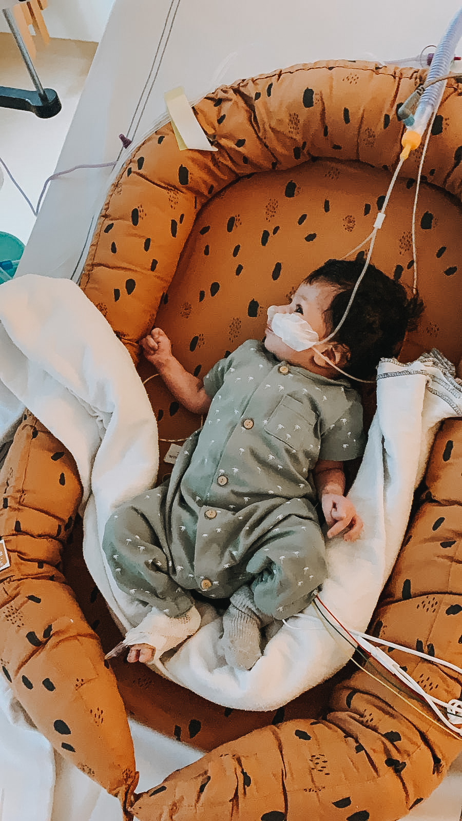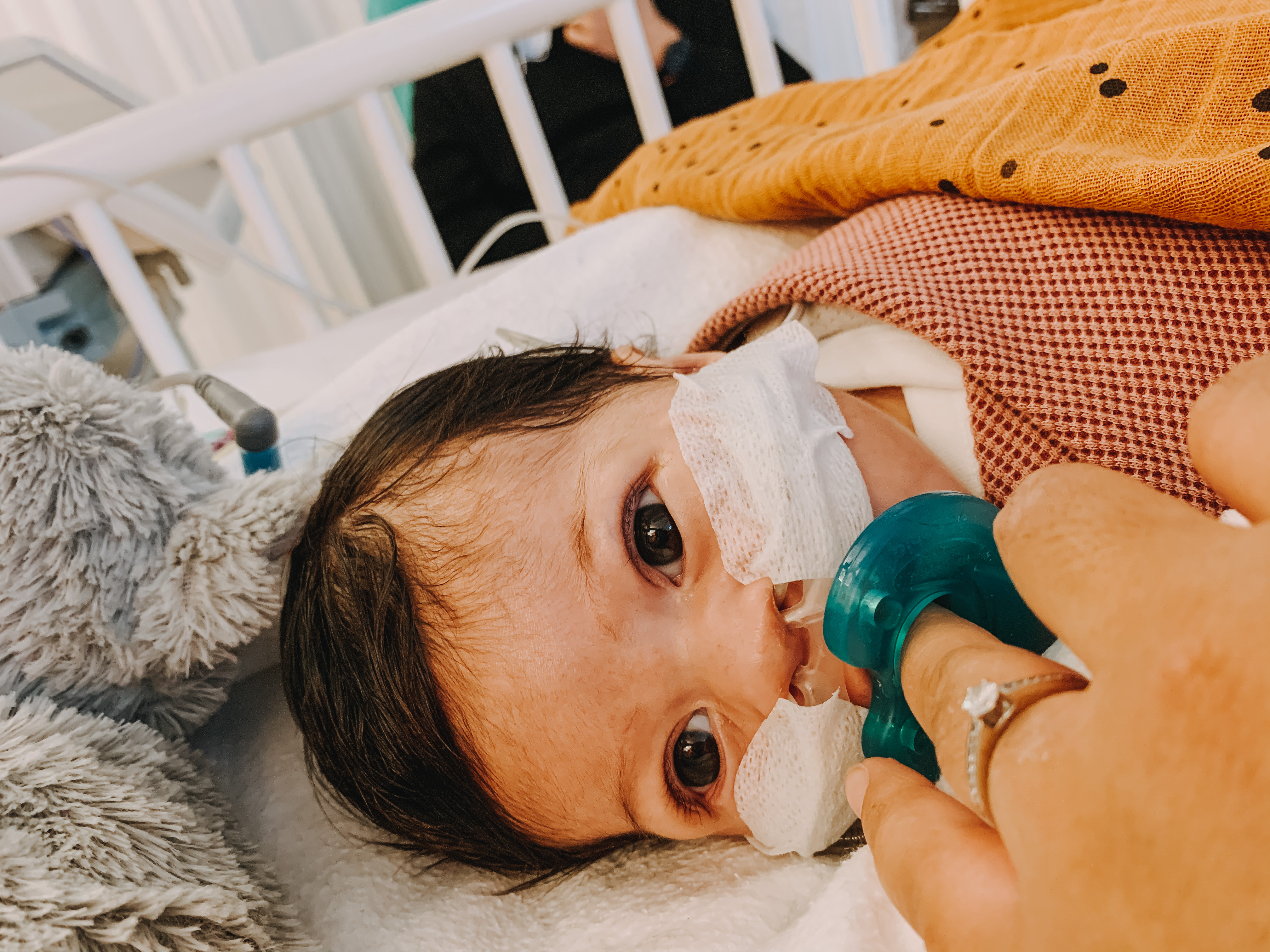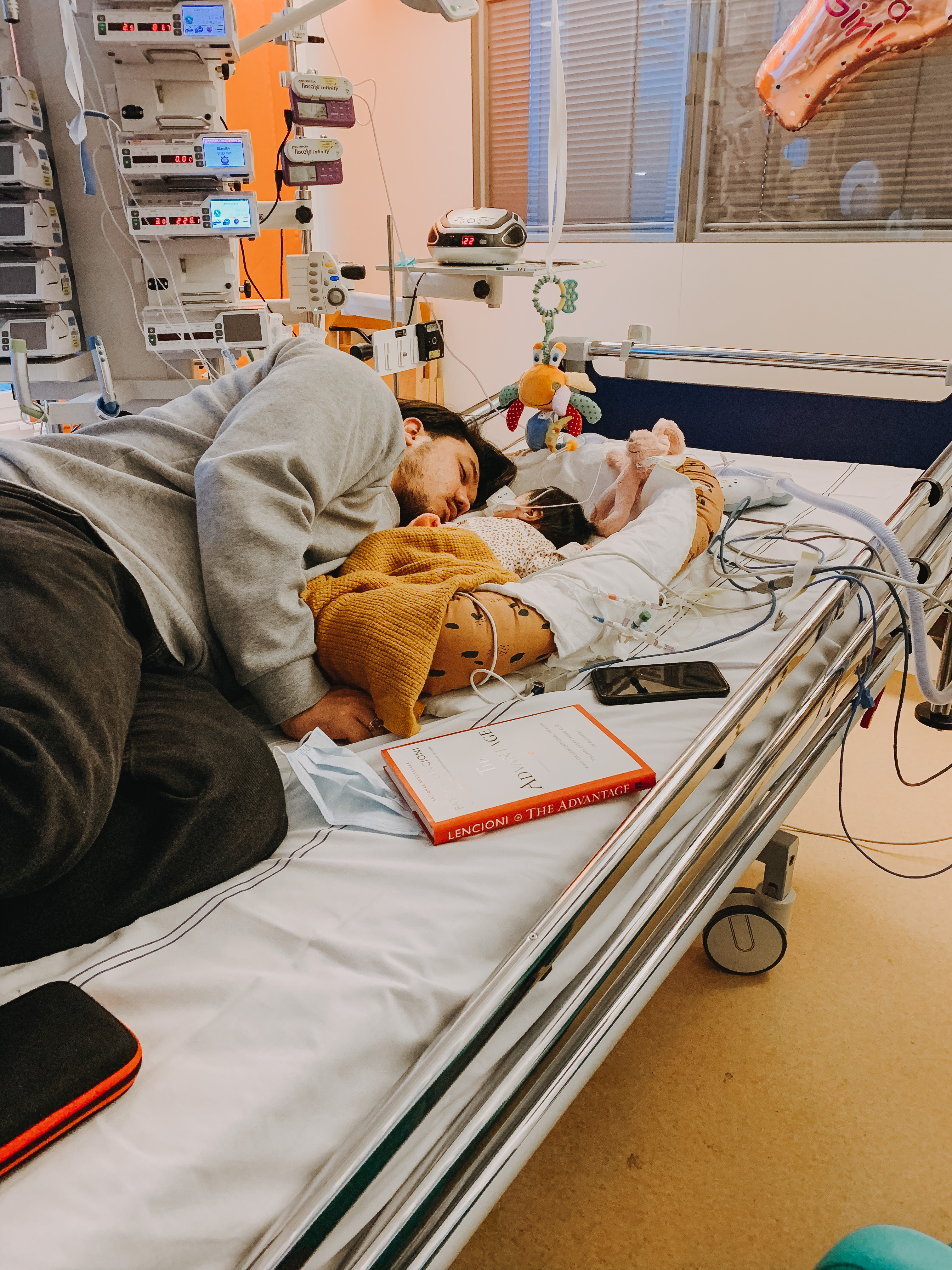 How everything changed on Tuesday. During the night, she already had to spit a little, but one expected Tuesday morning. Evelyn was hit with a fever of 39.5C and her heart rate had gone up a lot. She was crying too. When we arrived, mom took her in her arms to comfort her. Her heart rate shot up to the 200-210 area and we heard her cry like we had never heard her cry before. She went from blue to pale white and the doctors decided to take action and intubate her again, and to give her some additional support medically. We are so glad they took action on time – it might have prevented the need for reanimation. Evelyn was in really bad shape.