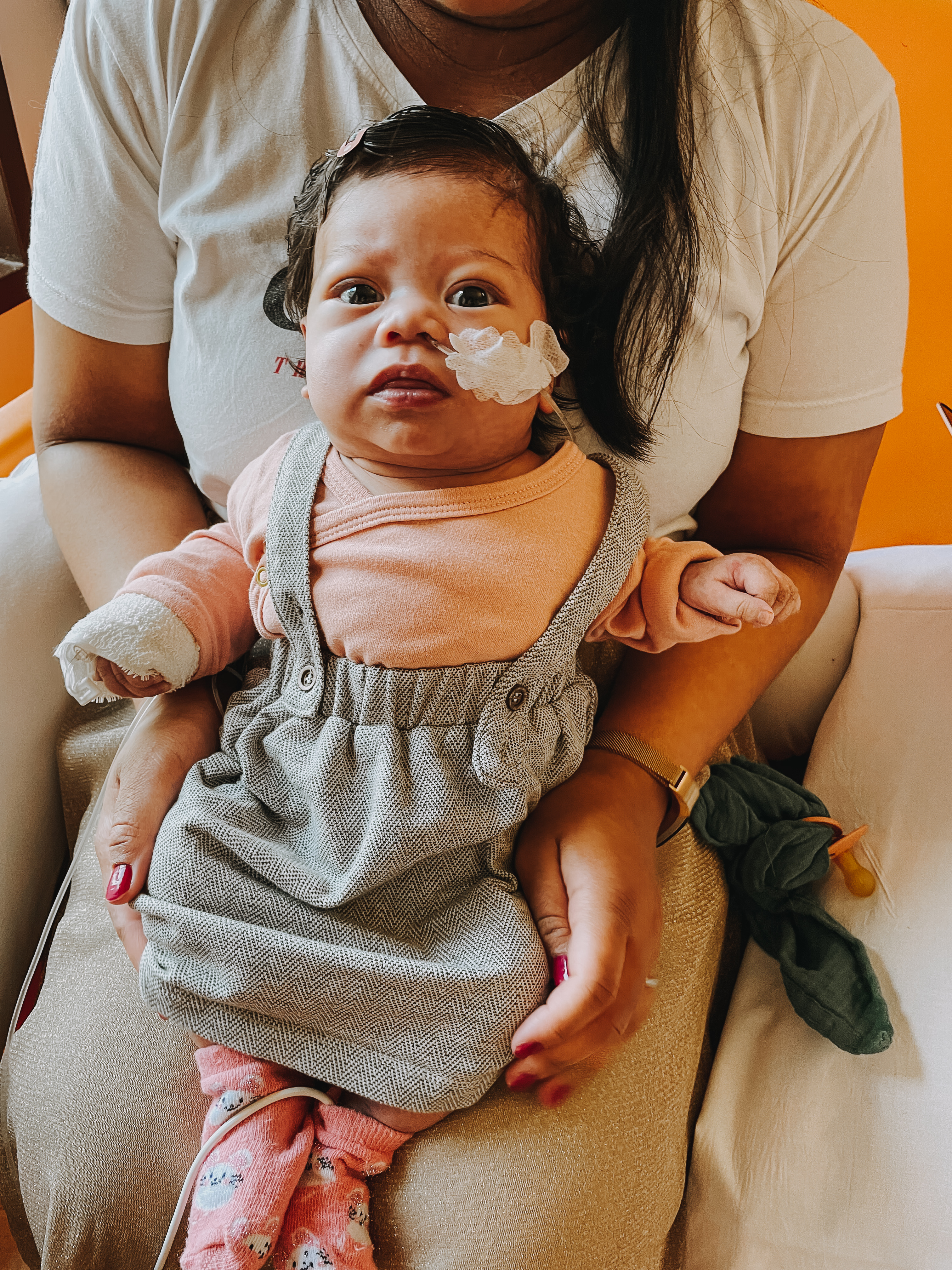 Our heart warrior Evelyn is turning four months! That means we have been in the hospital for four months, of which three weeks in medium care. Evelyn has already had the Norwood and the Glenn procedures – the last one a lot earlier than other HLHS babies. The Glenn has made so much difference. She has been making progress in baby steps.
