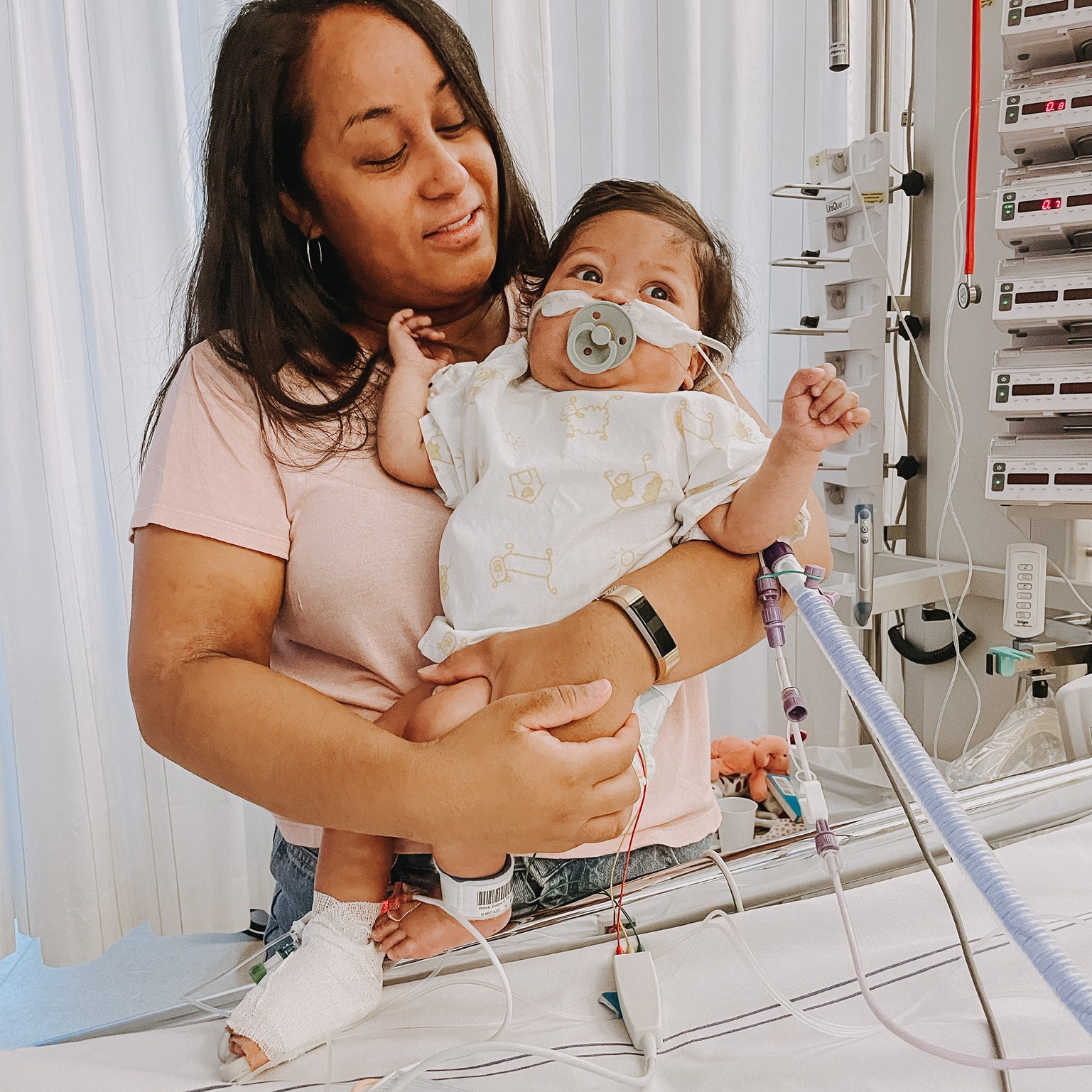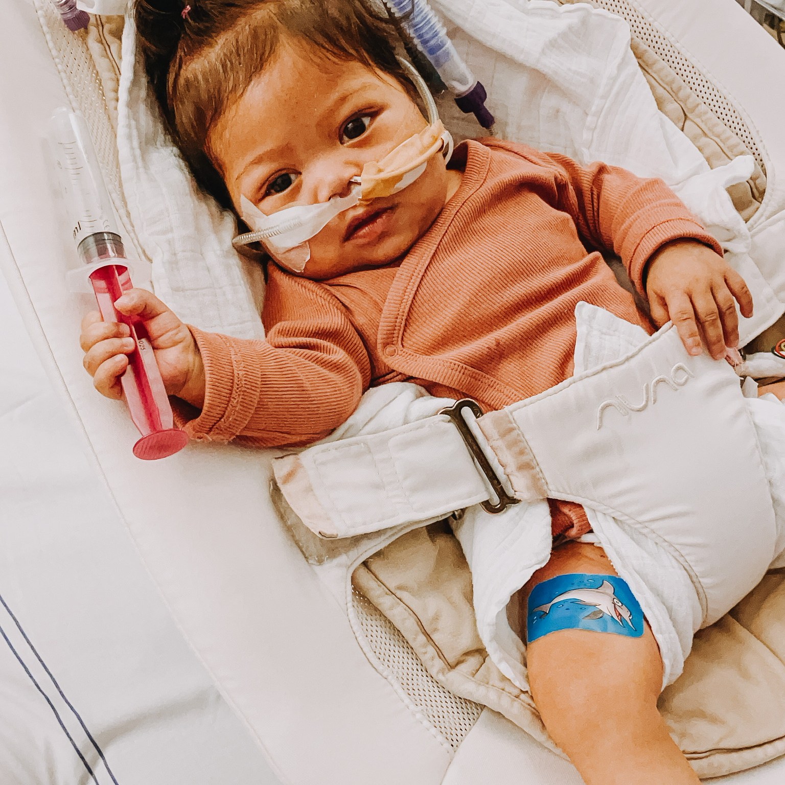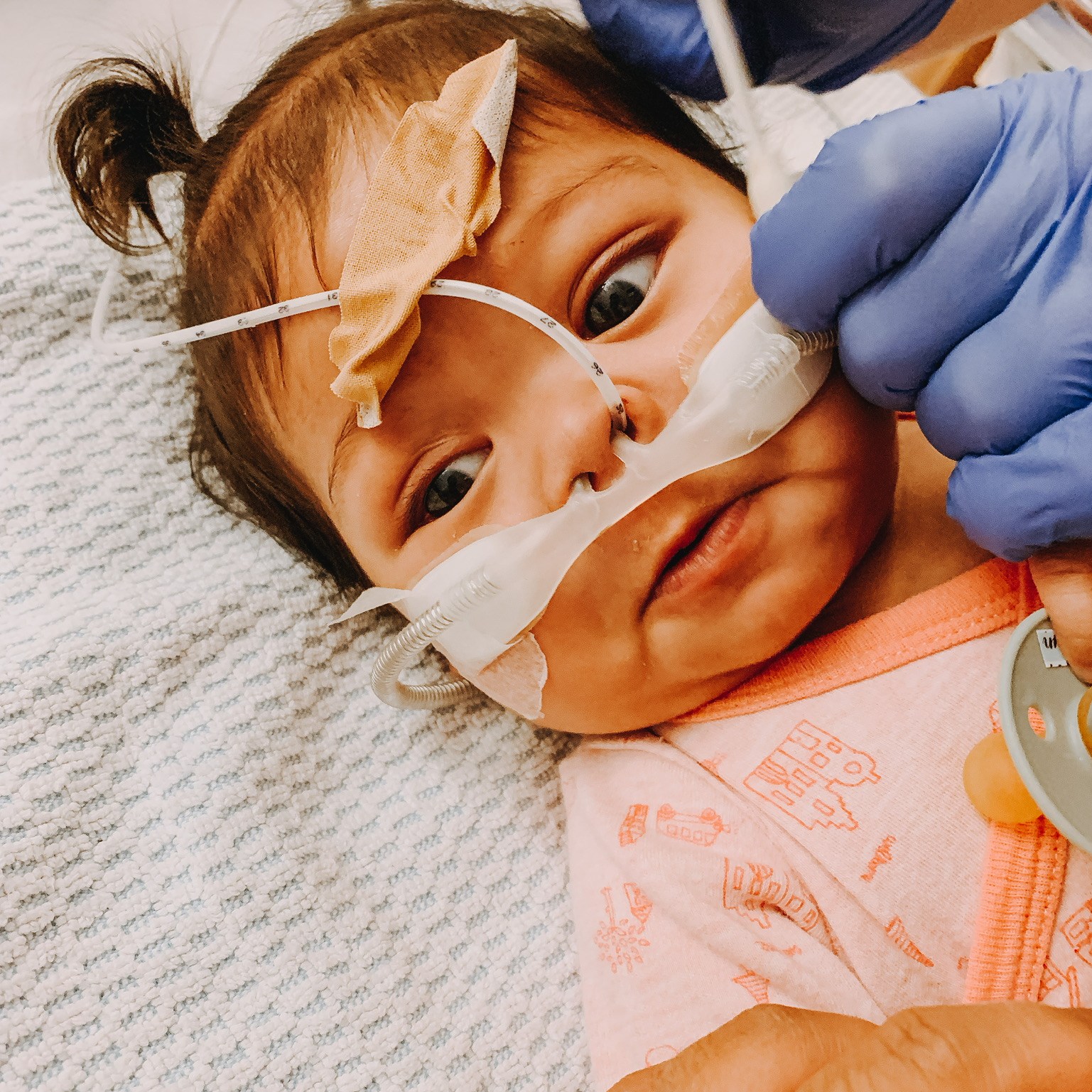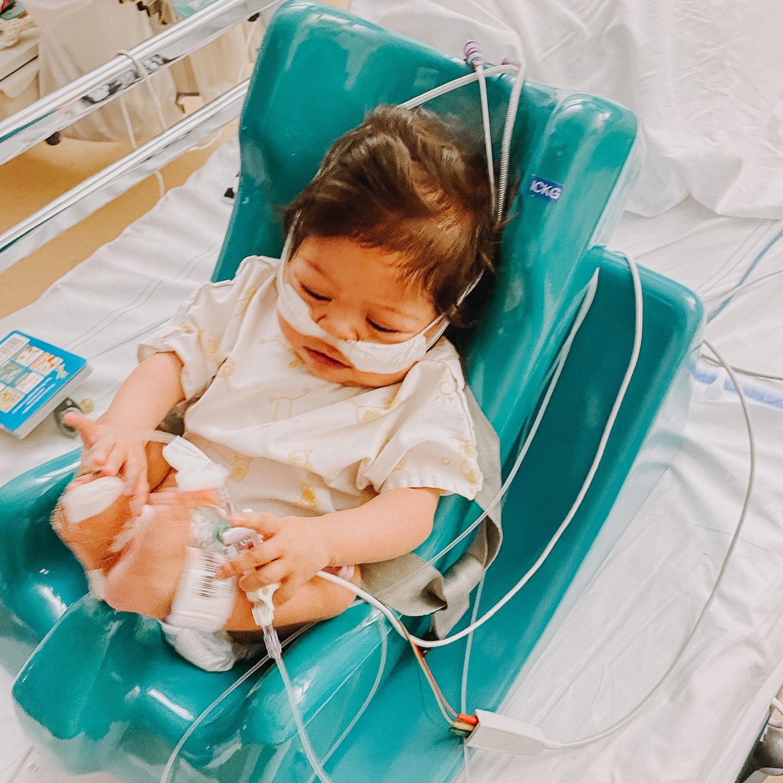 So Wednesday pretty much started the same as Tuesday. Biggest difference was that they started Dobutamine to help her heart and it made a big difference. That, in combination with the OptiFlow to aid her breathing, really helped Evelyn a lot. She had energy to play, could breathe more easily and was alert. But still it felt like relief when Wednesday afternoon we heard she needed to get ready for the procedure.