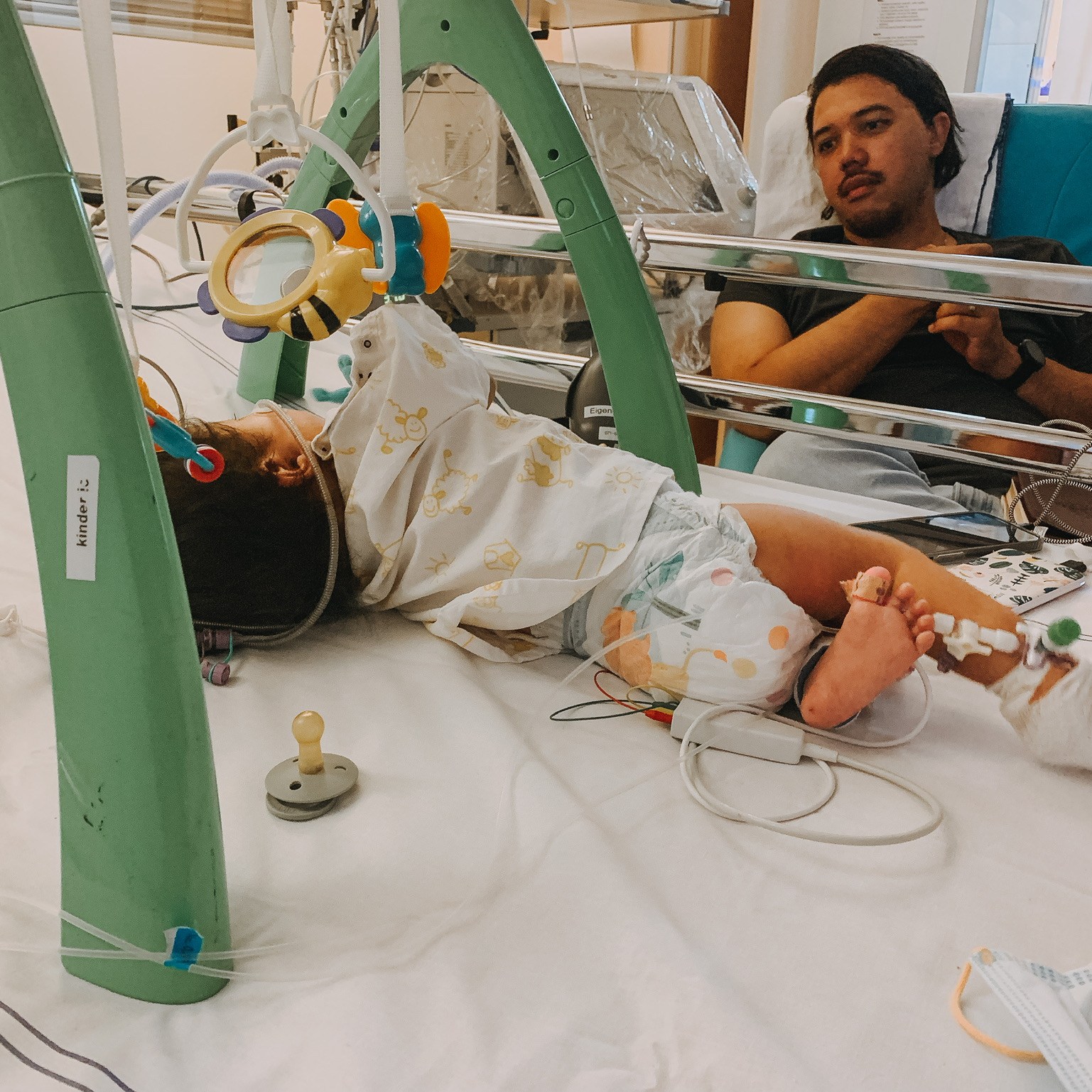 Around midnight we were finally settled. Loey went back home to get some more of our stuff so we can stay here for longer. We are taking turns: every night one of us sleeps with Evelyn and the other stays in the Ronald McDonald home here in Leiden, just a short walk away.
