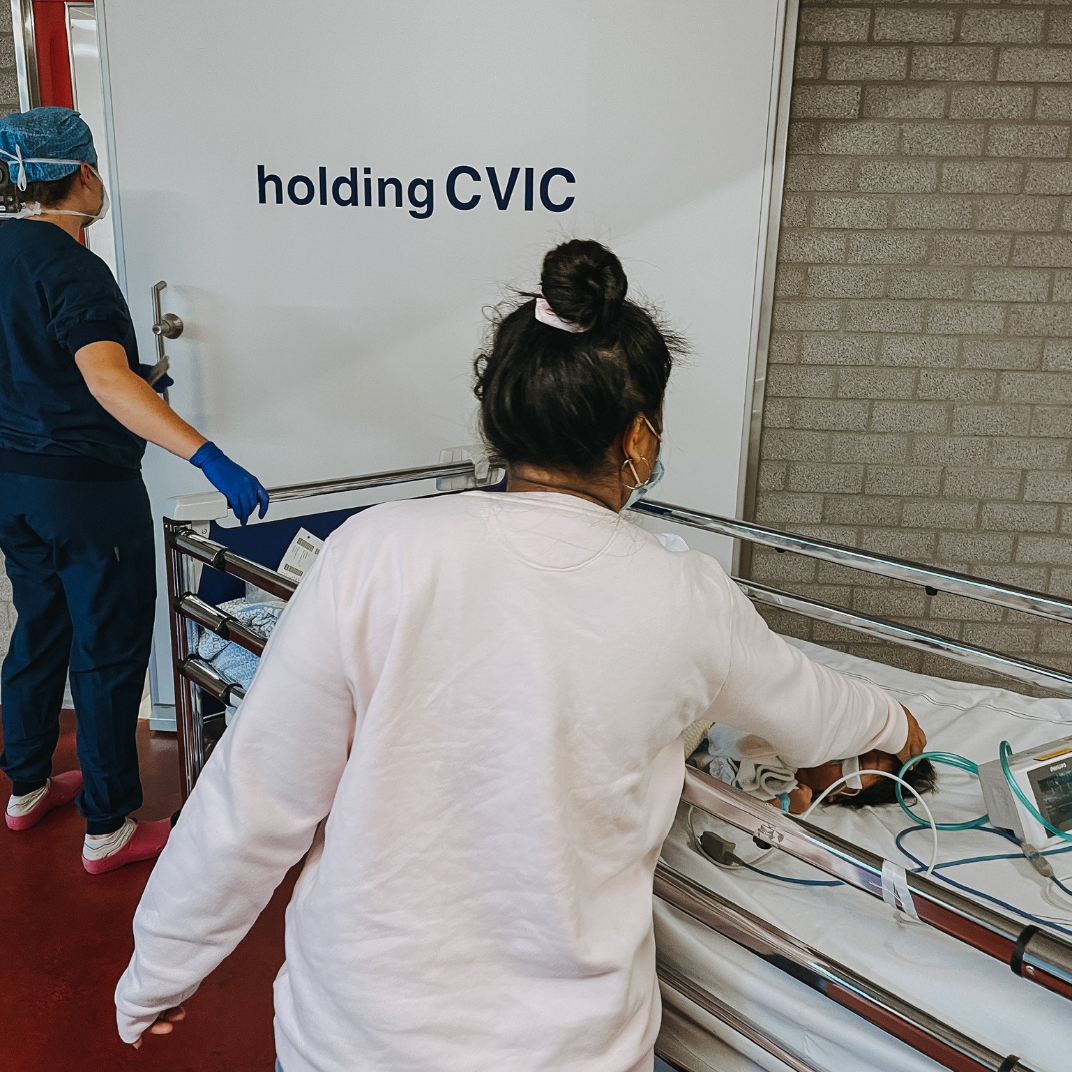 When we arrived at the ER, we were told only one of us could come to the examination and the other parent had to wait in the waiting room: COVID-19 rules. Intan went with her. Loey waited. Evvy was tested for the most common viral infections, bloodwork was done, an ultrasound was done and a photo of her thorax was taken. She was admitted due to her heavy breathing and more exams would be done.
