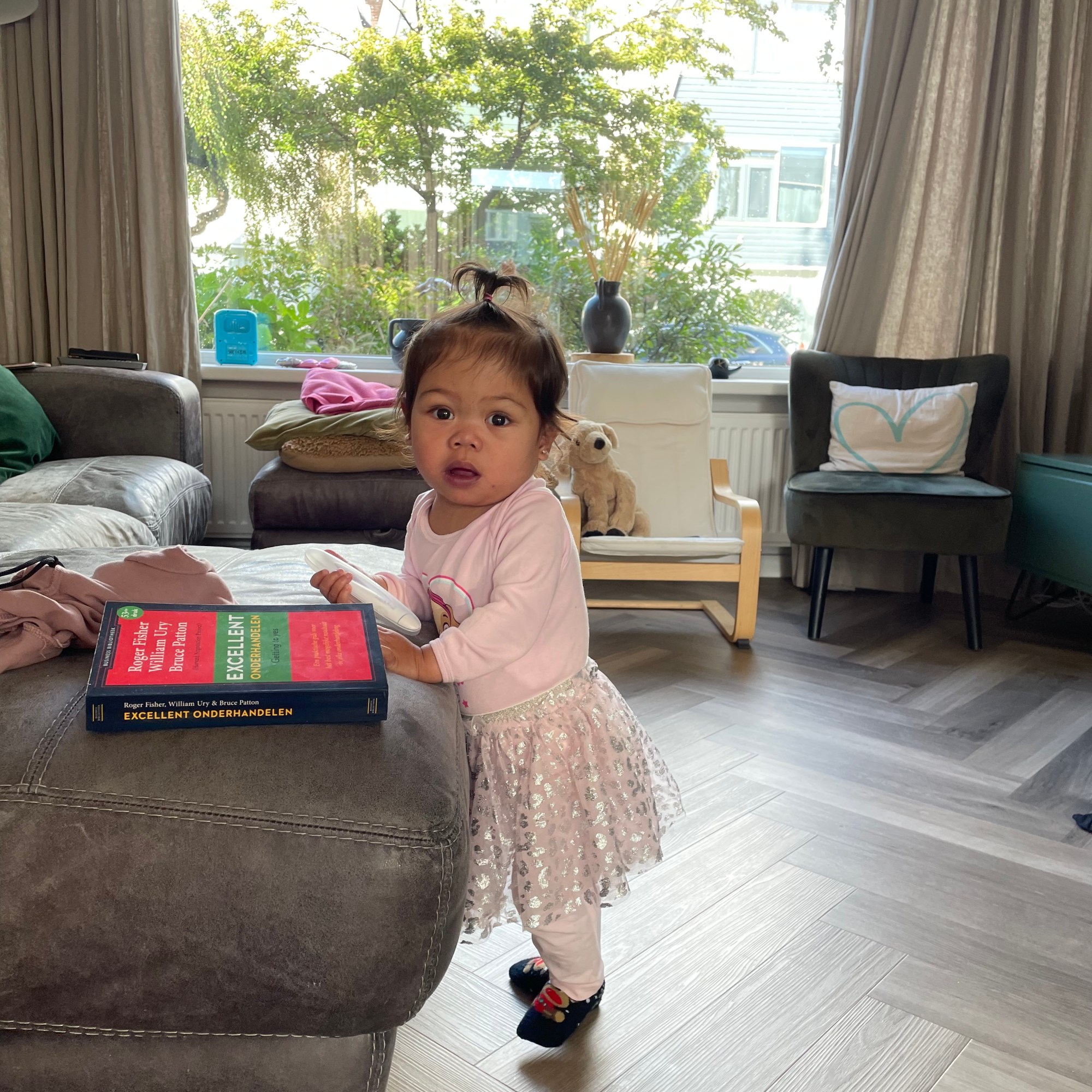 Evelyn is still in PT. She can’t crawl, still finds all the transitions between lying down, sitting and standing hard, so we are still working on that. She can walk when she is holding onto something, but finds it too scary and she is still too wobbly to walk by herself. It’s something that we are putting a lot of effort into, but also find difficult. Finding a balance in pushing her to her limits, but not beyond is hard, especially because she is such a bubbly and happy kid. She just enjoys her comfortable spots most, reading, making music and playing.